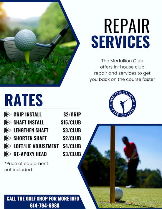 The Medallion Club Professional Shop is here to assist you with all of your golf needs. The shop is well stocked with all of the major equipment and apparel brands that golfers desire. Being a member has it’s perks too! When you are a member at the Medallion Club, you are eligible for “Mill River” pricing meaning all golf merchandise is offered to you at 10% above wholesale cost plus shipping and handling. This great program saves you hundreds of dollars on all of your golfing needs.